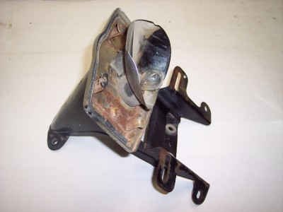 THIS IS A TAIL/BRAKE LIGHT/LICENSE PLATE MOUNTING BRACKET FOR A 1971-73 HONDA CB350 K3 K4 MOTORCYCLE. THE BRACKET SEEMS TO BE STRAIGHT OVERALL AND IN GOOD SHAPE AND THE TAILLIGHT HOUSING LOOKS GOOD WITH NO DAMAGE. SMP101-04