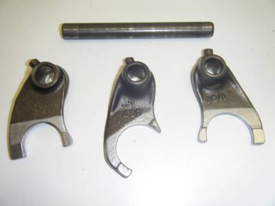 THESE ARE TRANSMISSION GEAR SHIFTER FORKS OFF OF A 1984 HONDA ATC200S 3 WHEELER ATV. THE NUMBERS ON THEM ARE C09, 427 L, AND 28H 437R. THEY INCLUDE THE LEFT, RIGHT, AND CENTER FORKS, AND THE MOUNTING SHAFT, AND EVERYTHING IS IN GOOD CONDITION. S338-53