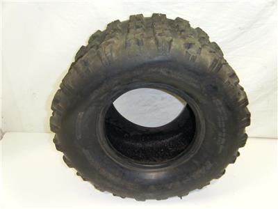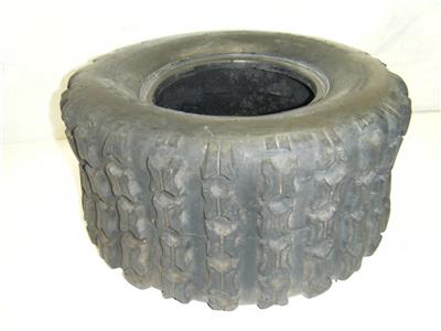 Este es un neumático trasero de la marca Far East de tamaño 18×9.5-8 para un ATV de 4 ruedas. La banda de rodadura se ve como nueva sin desgaste, pero tiene algunos cortes profundos o grietas en el costado que no parecen pasar por completo. No estoy seguro de si aguantará aire o si se puede reparar. SMP166-10